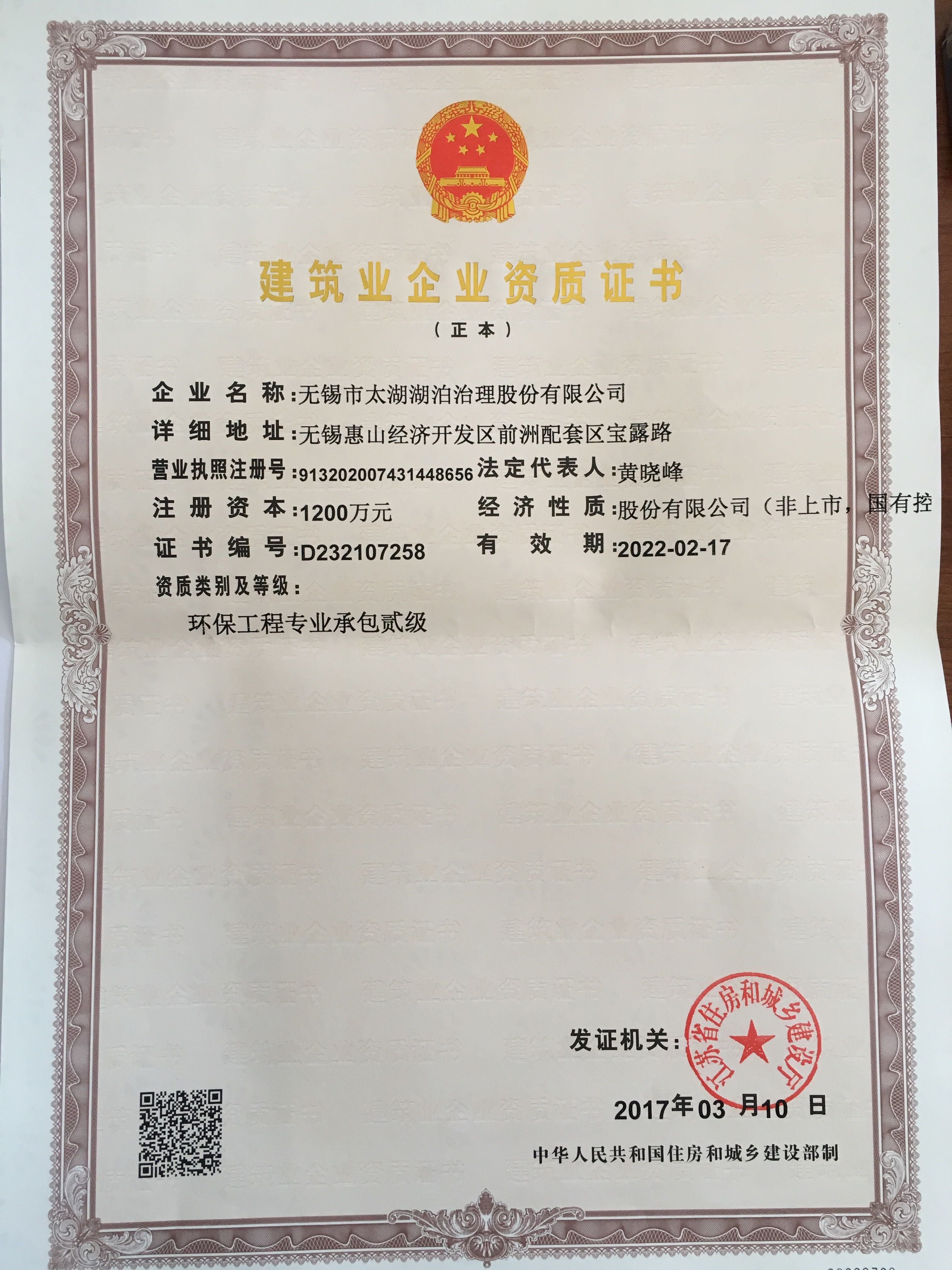 星空在线注册荣升环保工程专业承包贰级资质